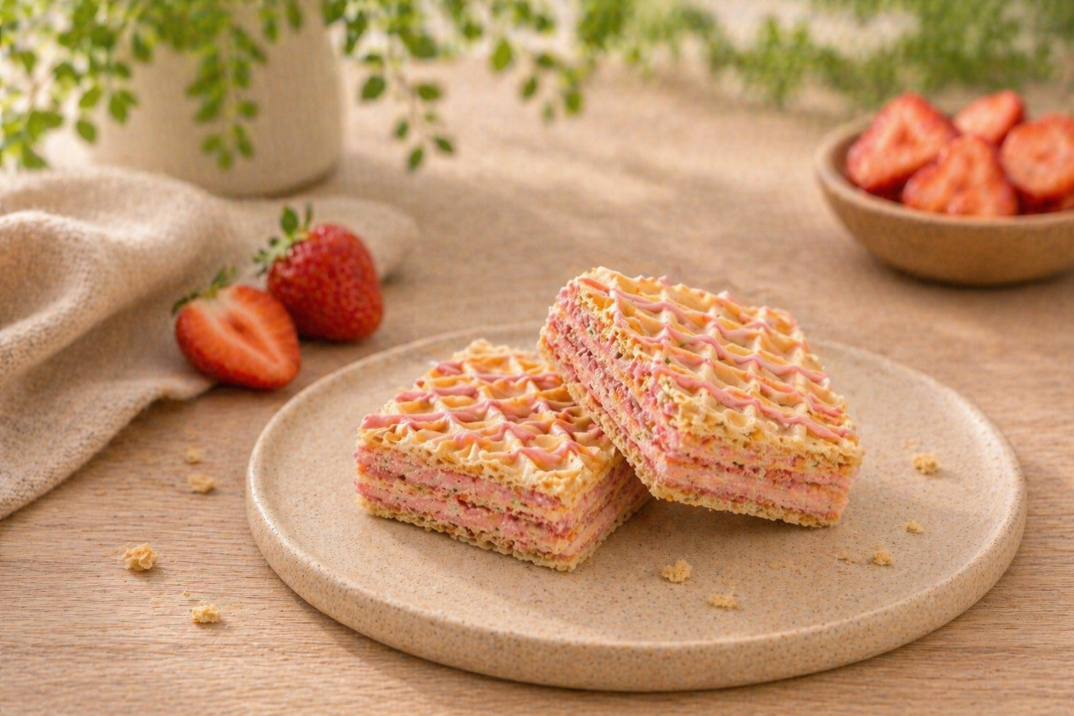 De Proteïne Wafel Aardbei combineert een luchtige, knapperige structuur met een zachte aardbeivulling. Een frisse en lichtzoete snack die niet alleen lekker is, maar ook goed past binnen jouw dieet.